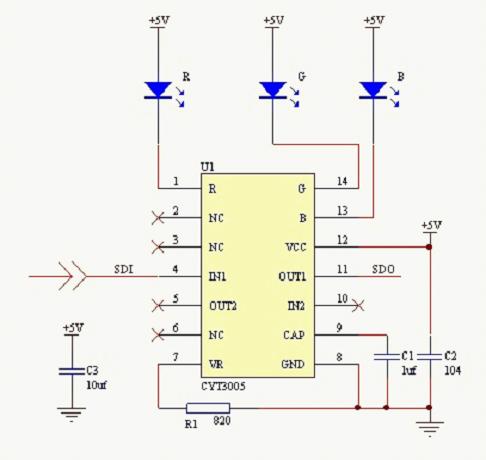 圖一 CYT3005單線傳輸驅(qū)動(dòng)全彩LED燈[page]