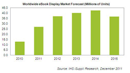 電子書閱讀器顯示器市場將面臨成長瓶頸。即使2011年整體出貨量成長逾倍,但市場研究機(jī)構(gòu)IHS iSuppli預(yù)估,未來3年,電子書閱讀器顯示器的成長將逐漸放緩,甚至于2015年首度出現(xiàn)負(fù)成長。