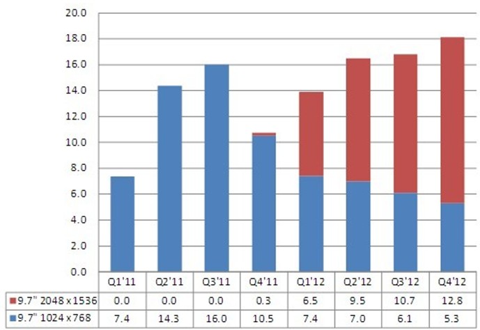 - 2012年,9.7寸iPad 面板出貨預計將可達6千5百萬片以上