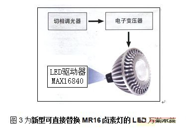 它應(yīng)用了新型MAX16840型LED驅(qū)動(dòng)器,該芯片的架構(gòu),使用了電子變壓器和切角調(diào)光器以實(shí)現(xiàn)無(wú)閃爍調(diào)光,形成了獨(dú)特的LED驅(qū)動(dòng)器方案,從而可實(shí)現(xiàn)兼容大多數(shù)電子變壓器和切角調(diào)光器MR16的LED燈設(shè)計(jì)。它在技術(shù)上確保無(wú)需對(duì)現(xiàn)有電路架構(gòu)做任何修改就可用LED換代燈直接替換MR16鹵素?zé)?。該方案為市?chǎng)應(yīng)用掃除了一大障礙,使終端用戶能夠以極低的配置成本獲得LED照明的全部?jī)?yōu)勢(shì),即:是一種確保無(wú)閃爍并可調(diào)光操作,又能兼容于絕大多數(shù)電子變壓器和切角調(diào)光器,可直接替代MR16的LED換代方案;更無(wú)需更改現(xiàn)有的電氣架構(gòu),又縮小板尺寸并降低BOM成本。那末LED換代燈構(gòu)建設(shè)計(jì)是如何實(shí)現(xiàn)吶?