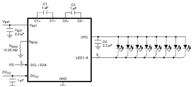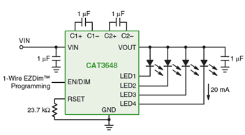 圖10:CAT3224 LED驅(qū)動器應(yīng)用電路圖
