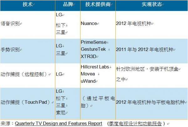 在2012年消費(fèi)性電子展(CES)上,語音識別和手勢識別的原型機(jī)首次展出;但事實(shí)上手勢識別功能已經(jīng)在市場上存在一段時(shí)間,只是未內(nèi)建在電視機(jī)里,例如Xbox游戲機(jī)的微軟Kinect手勢識別等。