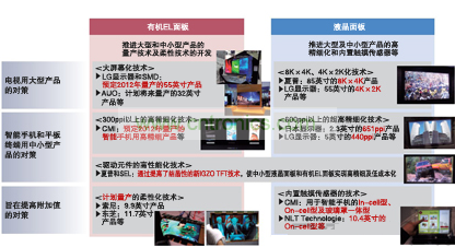 2012年,SMD和LG顯示器計劃量產(chǎn)電視用55英寸面板,友達(dá)光電(AUO)和奇美電子(CMI)計劃量產(chǎn)智能手機(jī)用中小型面板。日本廠商中,日本顯示器正在以2013年量產(chǎn)為目標(biāo)。索尼和松下也將共同開發(fā)大尺寸面板。隨著各競爭公司紛紛表明涉足,“如果美國蘋果等大客戶有需求,夏普應(yīng)該也不會拒絕”(顯示器相關(guān)分析師)。