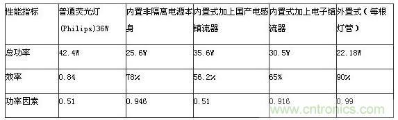 也就是說,直接替換的結(jié)果是效率大大降低,對于國產(chǎn)電感鎮(zhèn)流器,效率只有56.2%。只比普通熒光燈節(jié)電6.8W。 這使得LED日光燈的節(jié)電效能大打折扣,以致合同能源管理(EMC)難以執(zhí)行。