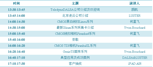 秉承客戶至上,以市場需求為導(dǎo)向,感謝一路上有新老客戶的陪伴支持與理解,才使得凌云公司在前進(jìn)的道路上有足夠的動(dòng)力與方向,看到了美好的視覺給人們帶來的豐富多彩的生活。此次答謝會(huì)得到了Teledyne DALSA的高度重視與支持,屆時(shí),DALSA亞太區(qū)OEM技術(shù)總監(jiān)Yvon Bouchard、 DALSA線掃描產(chǎn)品資深產(chǎn)品經(jīng)理何星飛等大咖將會(huì)帶來國際前沿的技術(shù)與產(chǎn)品資訊: