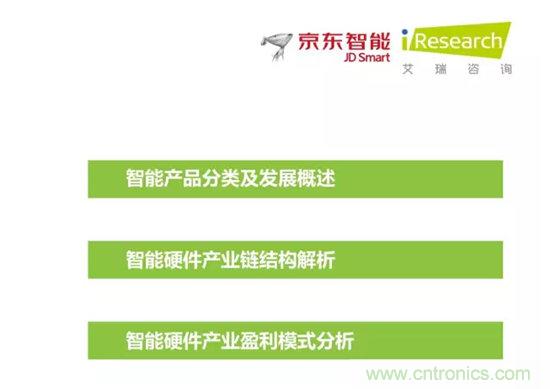 作為此次系列報(bào)告的開篇,京東智能與艾瑞對當(dāng)前智能硬件的產(chǎn)業(yè)鏈結(jié)構(gòu),發(fā)布了行業(yè)報(bào)告《2015中國智能硬件產(chǎn)業(yè)系列研究報(bào)告——產(chǎn)業(yè)鏈圖譜篇》該圖譜對現(xiàn)階段的智能硬件的發(fā)展趨勢進(jìn)行了劃分和定義,并對產(chǎn)業(yè)鏈的結(jié)構(gòu)進(jìn)行了分析。