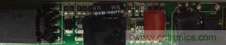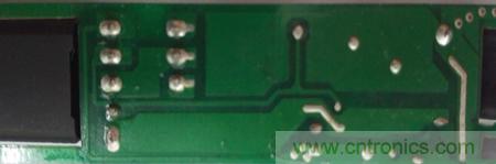 7、在輸入AC265V時實際測量開關(guān)管DS極之間最高峰值電壓有524V,而開關(guān)管DS極之間的距離僅有0.67mm,安全距離明顯不夠,因此很容易造成炸機現(xiàn)象,特別是在助焊劑不純的情況下,DS極之間會形成一個電阻,那就更加容易出現(xiàn)炸機現(xiàn)象。改善對策是重新修改PCB將開關(guān)管的引腳改為品字形設(shè)計,加大安全距離。