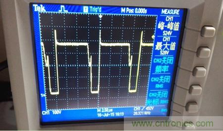 6、功率開關(guān)管采用TO-220塑封12N65的場效應管ID太大12A。一方面提高了成本,造成浪費;另外一方面因為開關(guān)管的結(jié)電容太大Ciss為2290PF,會造成驅(qū)動不足的現(xiàn)象反而會影響驅(qū)動轉(zhuǎn)換效率,實際測量開關(guān)管最高峰值電壓才524V。因此建議設(shè)計開關(guān)管用5N60或者7N60的MOS管。