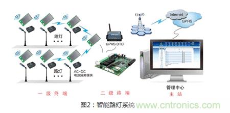 那么路燈是如何控制亮度協(xié)調工作的呢?下圖則是路燈控制系統(tǒng)的整體系統(tǒng)示意圖,在每個路燈節(jié)點上由一級終端設備將路況和環(huán)境信息通過ZigBee無線傳送給二級終端ZigBee集中器,通過它將信號轉為公網(wǎng)用的GPRS信號,最終傳遞給我們的管理中心,管理中心人員根據(jù)傳回來的信號,做出相應的控制,調節(jié)每個節(jié)點的亮滅及亮度。