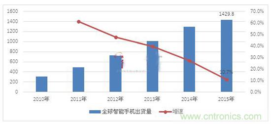 2015年全球智能手機(jī)出貨量保持兩位數(shù)增速,同比增長10.71%
