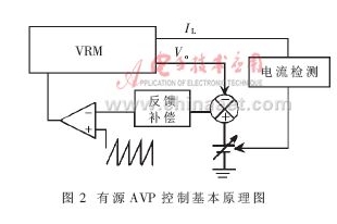 隨著VRM的深入發(fā)展,為滿足低電壓、大電流的需要,相繼提出了各種電路拓?fù)?,如帶抽頭電感的BUCK電路、有源鉗位的BUCK電路、耦合繞組的BUCK電路、移相軟開關(guān)BUCK電路等;并有優(yōu)良的控制方法問世,如V2控制、滯回控制等。以上的這些方法都甚是難以滿足電源模塊的發(fā)展需要。AVP的控制方法在適當(dāng)降低負(fù)載調(diào)整率的情況下有效地改善了模塊的動態(tài)響應(yīng),在低電壓、大電流的應(yīng)用場合中被人們重新認(rèn)識。本文對其從理論方法進(jìn)行分析,并采用新的檢測方法通過實驗證明了AVP良好的動態(tài)調(diào)節(jié)能力。