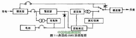 UPS不問斷電源是個特殊的設(shè)備,它既是電網(wǎng)的負載,又要給負載提供電源。所以它的EMC設(shè)計既要保證它不對電網(wǎng)造成電磁污染,又要保證它提供給負載的是個干凈的電源。UPS本身振蕩電路就是一個干擾源。典型的UPS系統(tǒng)框圖如圖l所示。它的基本結(jié)構(gòu)是一套將交流市電變?yōu)橹绷麟姷恼髌?、充電器和把直流電再變?yōu)榻涣麟姷哪孀兤鳎姵卦诮涣髡9╇妼Υ婺芰壳揖S持在一個正常的充電電壓上.一旦市電中斷,蓄電池立即對逆變器供電 保證UPS交流輸出。