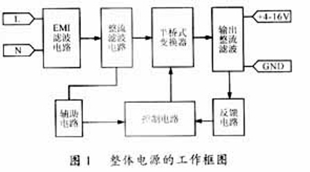 220V交流電壓經(jīng)過EMI濾波及整流濾波后,得到約300V的直流電壓加到半橋變換器上,用脈寬調(diào)制電路產(chǎn)生的雙列脈沖信號去驅(qū)動功率MOS管,通過功率變壓器的耦合和隔離作用在次級得到準方波電壓,經(jīng)整流濾波反饋控制后可得到穩(wěn)定的直流輸出電壓。