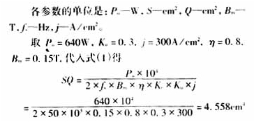 計算并確定磁芯型號:磁芯的幾何截面積S和磁芯的窗口面積Q與輸出功率Po存在一定的函數(shù)關(guān)系。對于半橋變換器,當(dāng)脈沖波形近似為方波時為