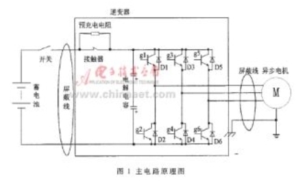 電機(jī)及其驅(qū)動系統(tǒng)是HEV的關(guān)鍵部件。首先,其高可靠性必須能夠保證HEV長期可靠工作;其次,系統(tǒng)效率對HEV的能耗水平具有決定影響。現(xiàn)在得到大規(guī)模應(yīng)用的有基于永磁電機(jī)和感應(yīng)電機(jī)的變頻調(diào)速系統(tǒng)(以下簡稱逆變器)。基于永磁電機(jī)的逆變器,以日立、川崎等日本公司的產(chǎn)品最為成熟;基于異步電機(jī)的逆變器,ABB、SIEMENS、ALSTON等歐洲著名公司都能夠提供不同功率等級的應(yīng)用系統(tǒng)。在電力機(jī)車市場方面,產(chǎn)品應(yīng)用和發(fā)展趨勢也是一致的。本文研究的是基于異步電機(jī)的逆變器,配套電機(jī)為湘電股份公司生產(chǎn)的YQ57型變頻牽引異步電動機(jī),應(yīng)用于湘電股份公司的XD6120型HEV客車上。