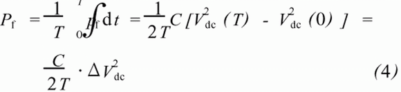 式中:T代表一個開關(guān)周期;Vdc(0)、Vdc(T)分別是0時刻和T時刻的直流側(cè)電壓;ΔV2dc是0時刻和T時刻的直流側(cè)電壓的平方差。綜合式(2)和式(4),有: