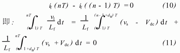 只要采樣和開關(guān)的速度足夠快,在一個開關(guān)周期內(nèi),我們可以認為vs、Vdc恒定,則式(11)可以化解為: