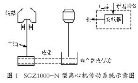 我廠海綿銅處理工序中采用SGZ1000-N 型三足式全自動下部卸料離心機(jī),進(jìn)行海綿銅固液分離,該設(shè)備由主機(jī)、輔機(jī)、轉(zhuǎn)鼓(以1 200 r/min轉(zhuǎn)動)等組成。傳動系統(tǒng)情況如圖1所示。