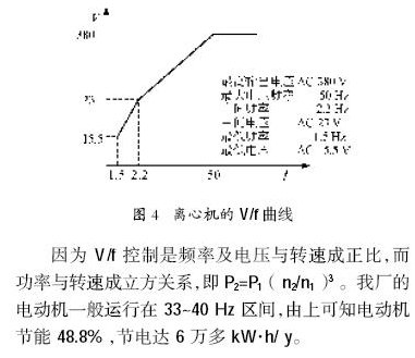 變頻器的控制方式大體有4 種:V/f控制,轉(zhuǎn)差頻率控制,矢量控制,直接轉(zhuǎn)矩控制。我廠選用的變頻器采用V/f 控制。