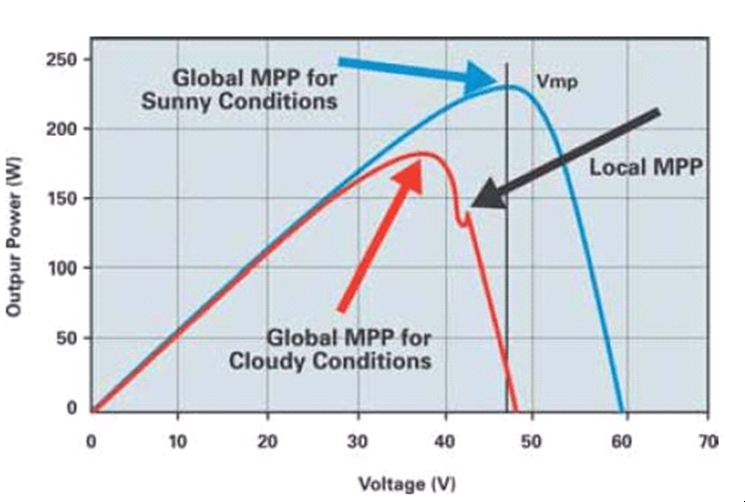 為了確定真正的MPP點,MPPT算法在足夠寬的范圍內振蕩,以避免因云層覆蓋或平靜的微風導致錯誤地選擇功率曲線上的局部峰值作為MPP點。但是,這種方法的不足之處在于:在每一個周期中,它都偏離MPP點振蕩,跟蹤的效率低下。