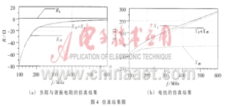 從圖4(a)的仿真結(jié)果可以看出,在200MHz附近,RIN+RL<0,所以滿足起振條件,由于RIN的負阻比較大,所以提供交流能量的能力比較強,故振蕩的幅度會比較大,這一點在后面的仿真和測試中可以得到證實。從圖4(b)可以看出,當(dāng)f為200MHz左右時,XIN+XL=0,從而滿足相位平衡條件,它決定了振蕩的頻率。