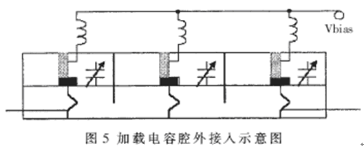 傳統(tǒng)的小信號電調螺旋諧振腔、濾波器中,加載電容采用腔內安裝接入方式。這種方式易實現(xiàn),但在高頻情況下,腔內強行添加異物,使本來就復雜的螺旋腔場分布變得更為復雜,導致工作特性難以把握。同時,新物體帶來的分布電容將引起中心頻率的偏移,嚴重時造成中心頻率超越所需頻段。