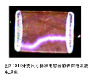 這些電容器的電容值通常是相同的,所以在這種情況下每個(gè)電容器的有效電壓(VC)都等于施加在該器件上的總電壓(VT)除以電容器的數(shù)目(n)即VC=VT/n。利用這種方法可以降低每個(gè)電容器組的有效電壓。高壓電路的設(shè)計(jì)者還利用這個(gè)原理,通過(guò)串聯(lián)單個(gè)電容器來(lái)降低每個(gè)電容器的電壓。不過(guò),在兩種情況下總電容(CT)都將會(huì)下降:1/CT=(1/C1+1/C2…+1/Cn)利用一臺(tái)高速相機(jī)觀察到了另一個(gè)重要的問(wèn)題,即在一個(gè)標(biāo)準(zhǔn)電容器設(shè)計(jì)上施加一個(gè)電壓之后出現(xiàn)的表面電弧放電現(xiàn)象,如圖2所示。“浮動(dòng)電極”串聯(lián)設(shè)計(jì)可以有效地解決表面弧的問(wèn)題。不過(guò),與如前所述的標(biāo)準(zhǔn)設(shè)計(jì)相比,其主要弊端在于其較低的容量。