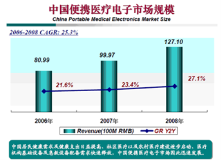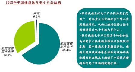 - 2008年國(guó)內(nèi)便攜式醫(yī)療電子產(chǎn)品市場(chǎng)的總量達(dá)到127億的規(guī)模