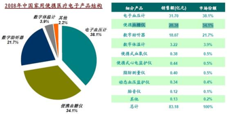 圖2 2008年中國(guó)便攜式醫(yī)療電子產(chǎn)品市場(chǎng)結(jié)構(gòu)