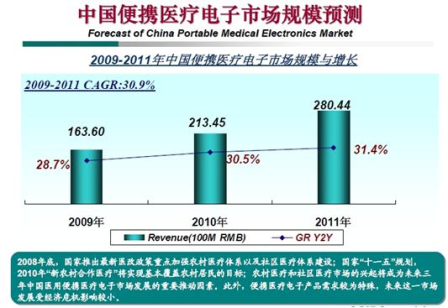- 未來(lái)3年,中國(guó)便攜醫(yī)療電子市場(chǎng)年復(fù)合增長(zhǎng)率將超過(guò)30%