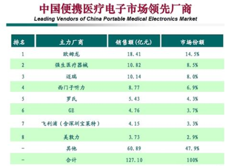 李樹(shù)翀指出從2008年中國(guó)便攜醫(yī)療電子市場(chǎng)的品牌結(jié)構(gòu)來(lái)看,便攜式電子醫(yī)療市場(chǎng)前八位占據(jù)了52%的市場(chǎng)份額,其他的48%市場(chǎng)由別的企業(yè)占領(lǐng),“這說(shuō)明便攜式醫(yī)療電子產(chǎn)品市場(chǎng)的品牌集中度還不高,對(duì)中國(guó)廠商來(lái)說(shuō)機(jī)會(huì)還存在。”他表示。