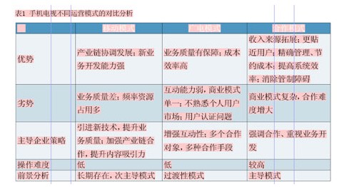 在手機(jī)電視運(yùn)營模式上,應(yīng)以合作模式為主導(dǎo)模式,以移動模式為次主導(dǎo)模式,不同運(yùn)營模式的對比分析見表1。