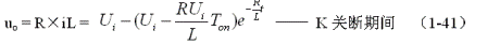 當t等于很大時,并聯(lián)式開關(guān)電源輸出電壓的值將接近輸入電壓Ui,但這種情況一般不會發(fā)生,因為控制開關(guān)K的關(guān)斷時間等不了那么長。