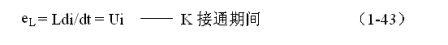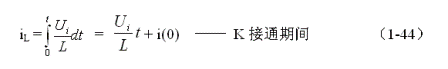 式中負號表示反電動勢eL的極性與(1-43)式相反,即:K接通與關(guān)斷時電感的反電動勢的極性正好相反。對(1-46)式進行積分得: