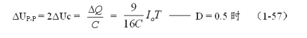 (1-58)和(1-59)式,就是計算并聯(lián)開關(guān)電源儲能濾波電容的公式(D = 0.5時)。式中:Io是流過負載電流的平均值,T為開關(guān)工作周期,ΔUP-P為濾波輸出電壓的波紋,或電壓紋波。一般波紋電壓都是取電壓增量的峰-峰值,因此,當D = 0.5時,波紋電壓等于電容器充電的電壓增量,即:ΔUP-P = 2ΔUc 。
