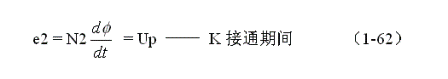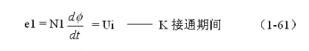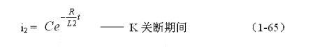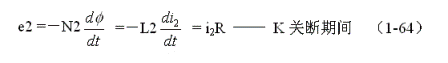 式中負(fù)號表示反電動勢e2的極性與(1-62)式中的符號相反,即:K接通與關(guān)斷時變壓器次級線圈產(chǎn)生的感應(yīng)電動勢的極性正好相反。對(1-64)式階微分方程求解得: