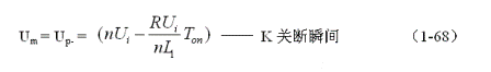 這里還需提請注意,在決定反激式開關(guān)電源輸出電壓的(1-78)式中,并沒有使用反激輸出電壓最大值或峰值Up-的概念,而式使用的Up正好是正擊式輸出電壓的峰值,這是因為反激輸出電壓的最大值或峰值Up-計算比較復(fù)雜((1-68)式),并且峰值Up-的幅度不穩(wěn)定,它會隨著輸出負(fù)載大小的變化而變化;而正擊式輸出電壓的峰值Up則不會隨著輸出負(fù)載大小的變化而變化。