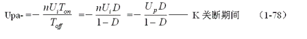在變壓器開關(guān)電源中,正激式輸出電壓的計算比較簡單,而反激式輸出電壓的計算相對來說很復(fù)雜,因此,如果沒有十分必要,最好采用半波平均值的概念和(1-75)式,通過計算正激電壓的半波平均值,來推算反激式輸出電壓的半波平均值。因此,(1-75)式主要還是用來計算反激式輸出電壓的半波平均值的。
