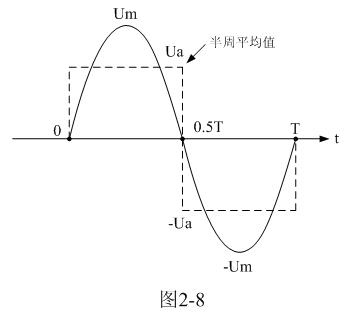 順便說明,這里的半周平均值,并不是一般意義上的正、負(fù)半周波形完全對(duì)稱交流電壓正半周,或負(fù)半周的平均值,這里的半周平均值是泛指整個(gè)周期中的正半波電壓或負(fù)半波電壓在半個(gè)周時(shí)間內(nèi)的平均值。如圖2-9所示。另外,(2-19)、(2-20)式中的半周平均值Ua和Ua-與第一章中(1-73)、(1-74)、(1-75)式定義的半波平均值Upa和Upa-也有一點(diǎn)差別,Ua和Ua-與Upa和Upa-的差別,主要是在分母上。