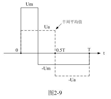 這種計(jì)算方法,對(duì)于非正弦波同樣有效。圖2-9是一個(gè)正、負(fù)脈沖幅度以及脈沖寬度均不相等的交流脈沖波形,我們同樣可以用分別計(jì)算它們正、負(fù)半周平均值Ua、-Ua的方法,然后用平均值Ua替代(2-17)或(2-18)式中的矩形脈沖幅度E 。
