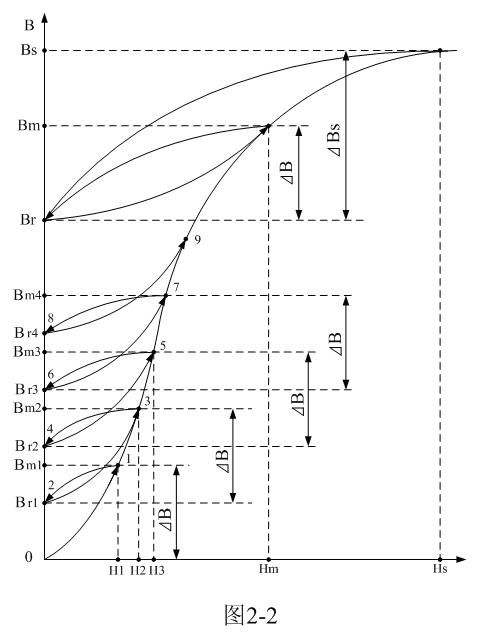 由(2-13)和(2-14)式可以知道,盡管磁化曲線不是線性的,但當(dāng)輸入電壓為方波時(shí),流過變壓器初級(jí)線圈勵(lì)磁電流所產(chǎn)生的磁通還是按線性規(guī)律增長(zhǎng)的;而流過變壓器初級(jí)線圈勵(lì)磁電流以及磁場(chǎng)強(qiáng)度卻不一定是按線性規(guī)律增長(zhǎng),正因?yàn)槿绱?,才使得?-13)和(2-14)式中出現(xiàn)一個(gè)比例常數(shù)K 。