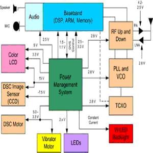 在3G芯片組中,基頻處理器現(xiàn)已包含DSP、微處理器/微控制器、模擬數(shù)字轉(zhuǎn)換器和數(shù)字模擬轉(zhuǎn)換器,用來控制射頻訊號(hào)和音頻訊號(hào)處理。這顆處理器的核心電壓已降至1.2V或是更低,I/O和外圍電壓也開始減少至2.5V至3.0V范圍;由于3.xG電話的電流需求通常都超過2.G電話,3.xG設(shè)計(jì)人員需要效率高于線性穩(wěn)壓器的直流電源轉(zhuǎn)換器,以便提供更長(zhǎng)的電池使用時(shí)間。為進(jìn)一步延長(zhǎng)電池壽命,許多設(shè)計(jì)人員必須盡量利用鋰離子電池電力,直到其電壓降至最小值為止;在此過程中,如何產(chǎn)生3.3V電壓就變成一項(xiàng)挑戰(zhàn)。