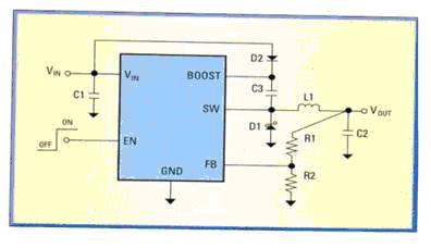 恒壓供電的基本電路(圖1左)采用反饋電阻RFB1和RFB2,當負載電流發(fā)生變化時,VFB也隨之變化,DC/DC穩(wěn)壓器通過感知VFB的變化,使輸出電壓維持在一個固定的電平: