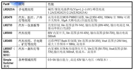 表2:美國國家半導體的LED驅(qū)動器解決方案一覽表