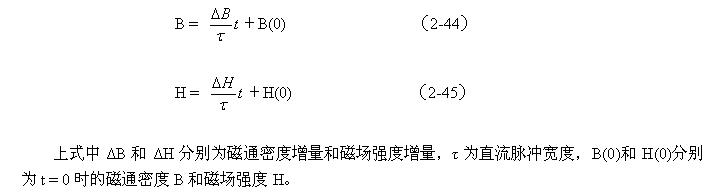 在圖2-19-b中,隨著時(shí)間線性增長(zhǎng)部分是變壓器初級(jí)線圈勵(lì)磁電流產(chǎn)生的磁場(chǎng);Hb是為了補(bǔ)償渦流產(chǎn)生的去磁場(chǎng),而由變壓器初級(jí)線圈另外提供電流所產(chǎn)生的磁場(chǎng)。