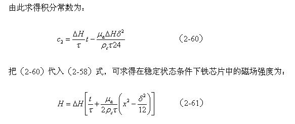 當(dāng)x = 0時(shí),正好位于鐵芯片的中心,此處的磁場(chǎng)強(qiáng)度最小,即此點(diǎn)的導(dǎo)數(shù)值等于0,由此求得積分常數(shù)c1= 0。