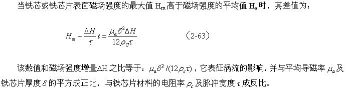 因此,在鐵芯片中磁通密度分布是不均勻的,即最外層磁場(chǎng)強(qiáng)度最大,中心處最小。如果渦流退磁作用很強(qiáng),則磁通密度的最大值可能遠(yuǎn)遠(yuǎn)超過其平均值,該數(shù)值由已知脈沖的幅度和寬度來決定。