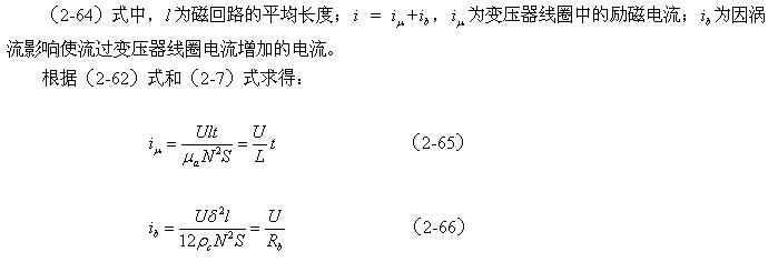 [page]圖2-20-a就是根據(jù)(2-67)、(2-68)式畫出的開關(guān)變壓器受渦流影響時(shí),輸入端磁化過程的等效電路圖。