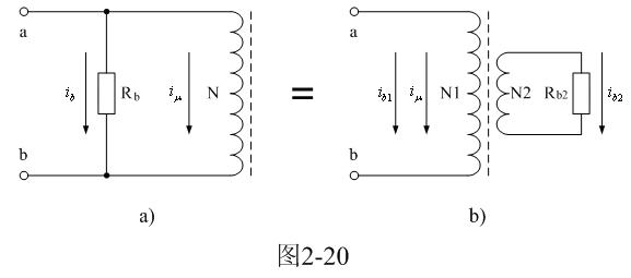 圖2-20-a中,Rb為渦流損耗等效電阻,N為變壓器初級(jí)線圈。由此可以看處,由于受渦流損耗的影響,變壓器鐵芯被磁化時(shí),相當(dāng)于一個(gè)渦流損耗等效電阻Rb與變壓器初級(jí)線圈N并聯(lián)。