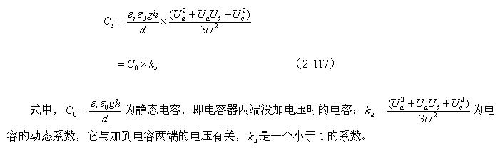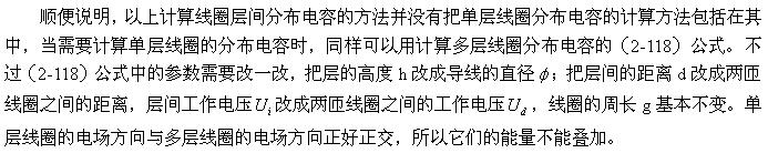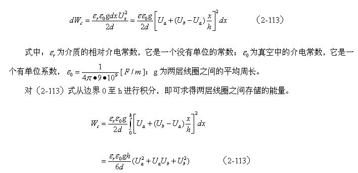 設(shè)兩個線圈相對應(yīng)的兩表層間的電場近似均勻分布,即近似平板電容器的電場,那么,根據(jù)(2-112)式就可以求得該電場貯存的能量為: